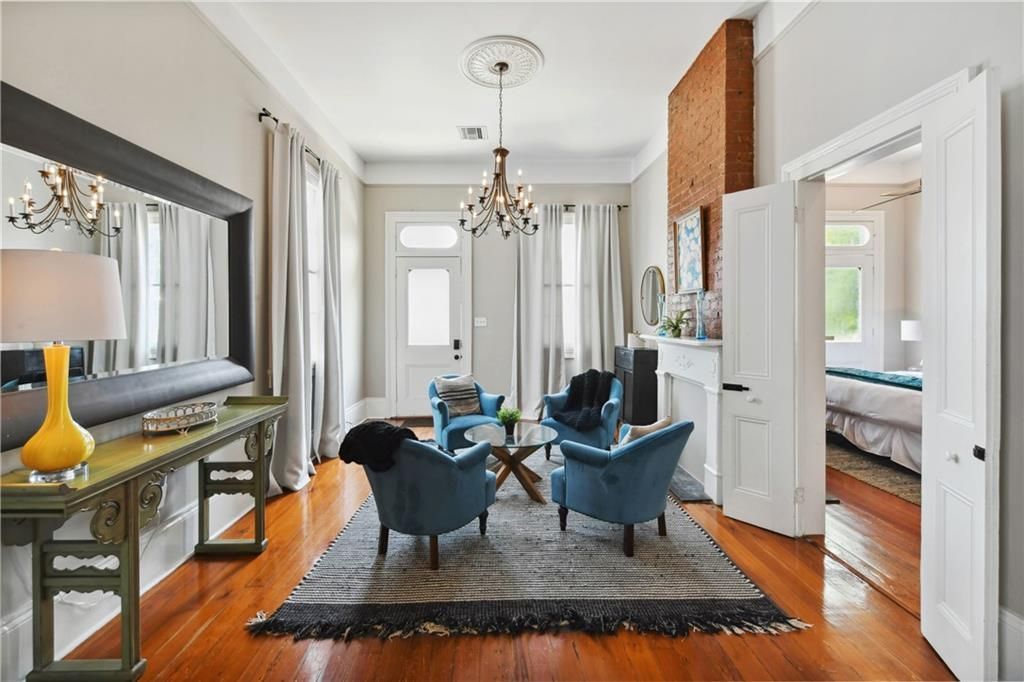 Where historic Marigny charm meets modern New Orleans living. Welcome to an iconic 1890s bracketed double reimagined into a stunning single family retreat. Thoughtfully transformed while honoring its architectural soul, this 4-bed, 3-bath home blends preserved craftsmanship with sophisticated updates across nearly 2,500 sq ft of living space. Step inside to soaring ceilings, original wood floors, ornate fireplaces, and classic picture molding. The spacious modern kitchen shines with marble countertops, stainless steel appliances, and generous room to gather. Multiple living areas offer flexible, inviting spaces perfect for entertaining or unwinding. A rare bonus: an attached guest suite, complete with its own oversized bath, walk-in shower, efficiency kitchen, and washer/dryer which is ideal for visitors, extended family, or creative studio space. Out back, enjoy a covered brick patio overlooking a large fenced yard with room to relax, garden, or play. The home's blend of style, scale, and authenticity makes it a standout in one of New Orleans' most artistic neighborhoods. This is Marigny living at its best with historic character, modern comfort, and endless charm.