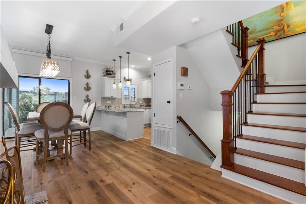 Luxury waterfront living in Madisonville's boating community! End unit with abundance of windows. 2-bedroom, 3 full bath + half bath townhome on the Tchefuncte River. Completely renovated to the studs. Featuring granite countertops, new cabinetry, custom walk-in showers, crown molding, upscale lighting and plumbing fixtures. High quality window treatments. Windows are tinted. Located in the south building, offering views of the marina and river. The ground level includes versatile garage/living space featuring its own HVAC, efficiency bar and full bath. This offers endless versatility as a guest space or a game room with direct access to covered decked patio and boat lift. The second floor boasts a spacious living room, kitchen, breakfast area, half bath, and 20' x 14' patio overlooking the marina. Third floor includes two bedrooms with ensuite bathrooms, walk-in closets and walk-in laundry room. New motorized boat lift. Roof replaced in 2024. All within a gated community with pool, clubhouse, tennis courts, and marina.